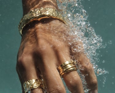 Our statement gold jewelry is designed to move with you — through water, through moments, through every version of your day. Crafted with a premium 18k gold finish, each piece is waterproof, durable, and made to last, without losing its shine or character.